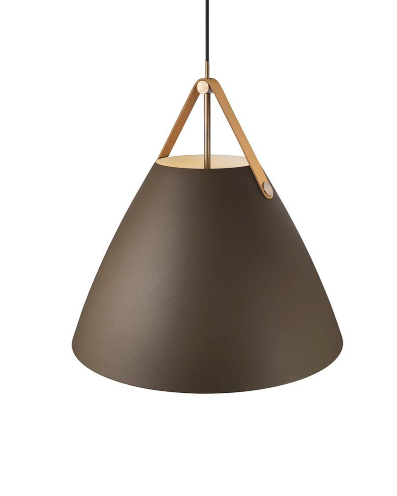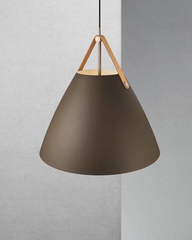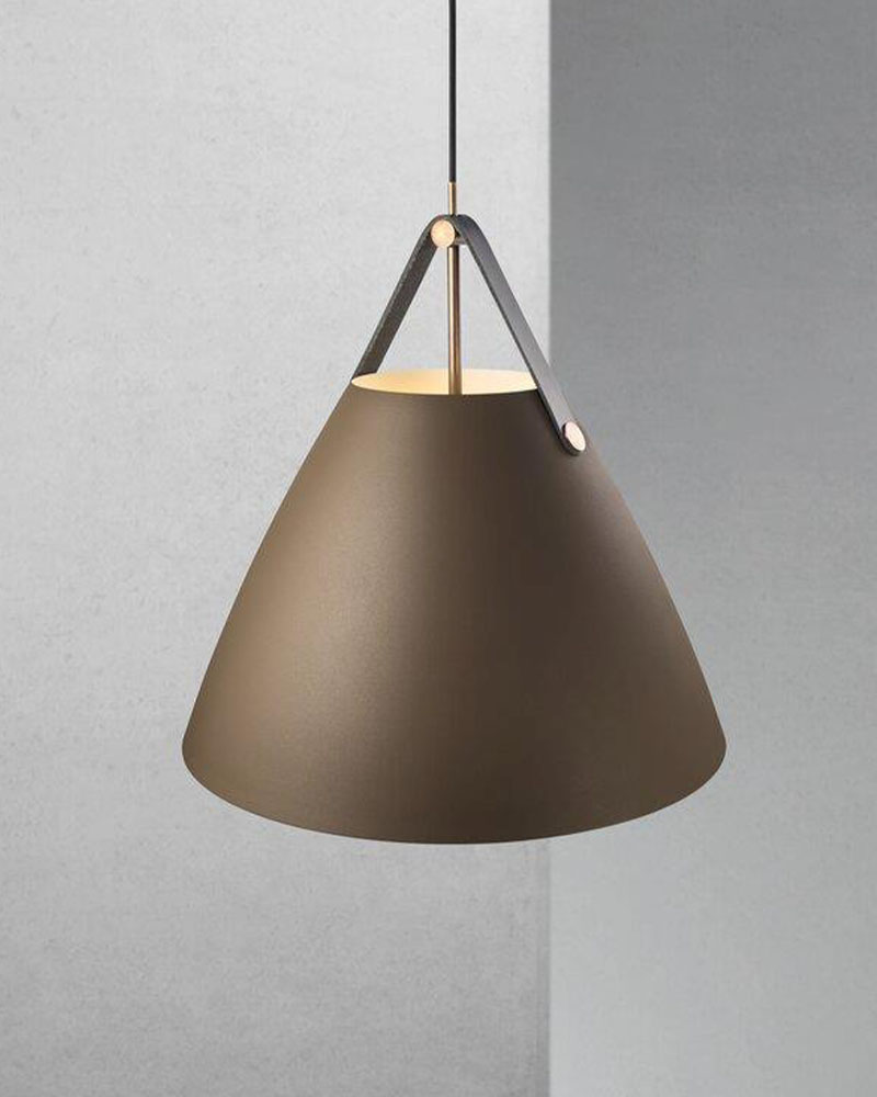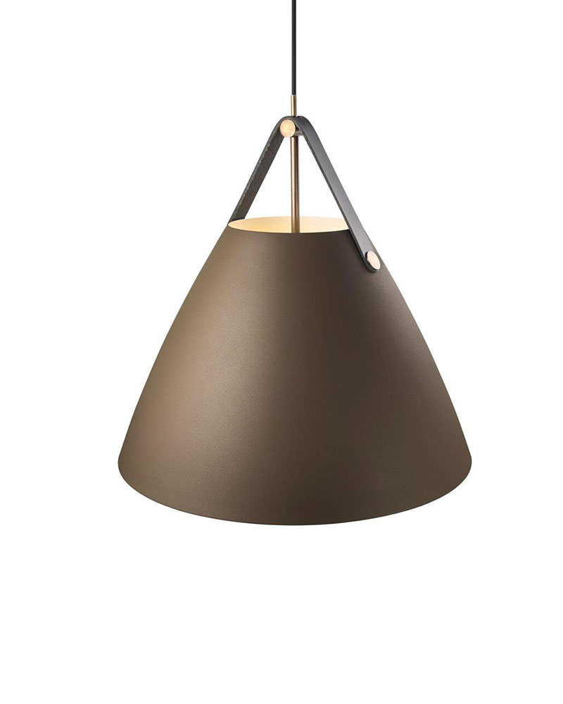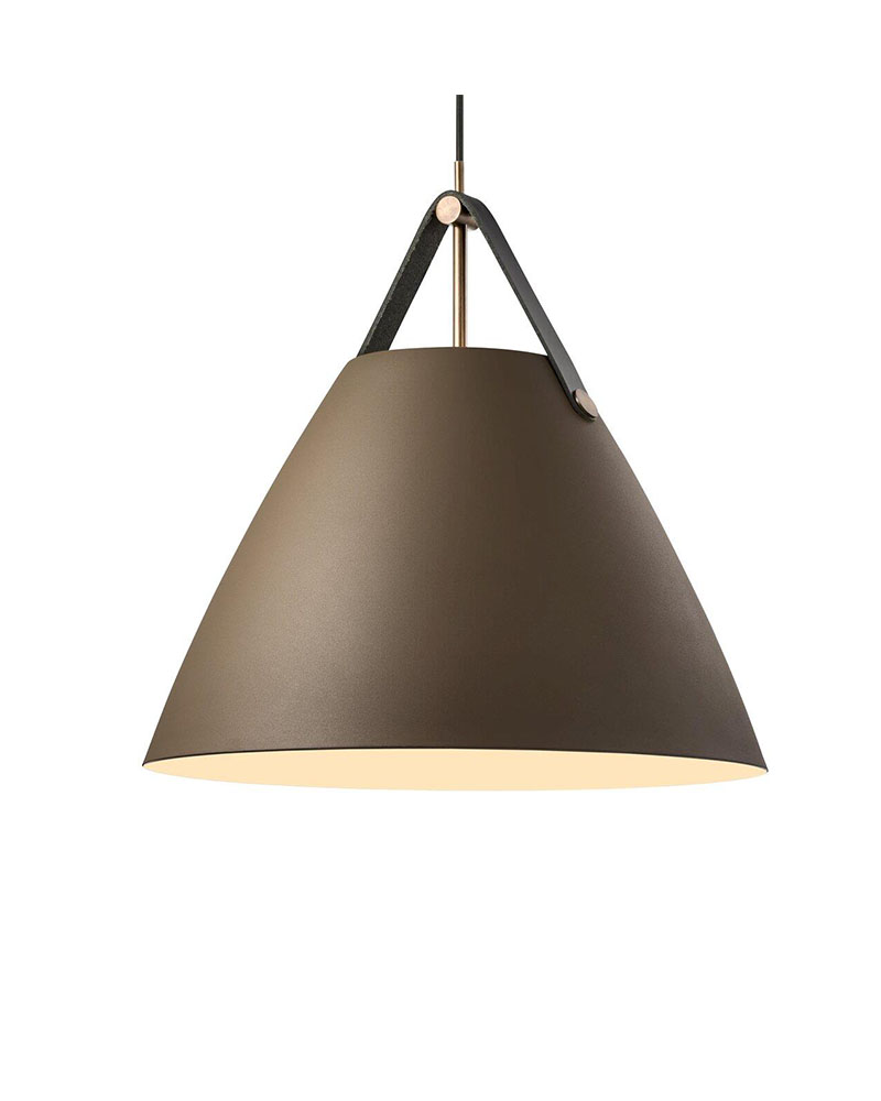 Med Strap 48 følger en sort stofledning samt to smalle læderstropper til at hænge lampen op i. Du vælger selv, om du ønsker at bruge den brune eller sorte rem. Du er på den måde med til at sætte dit eget præg på lampens udtryk.