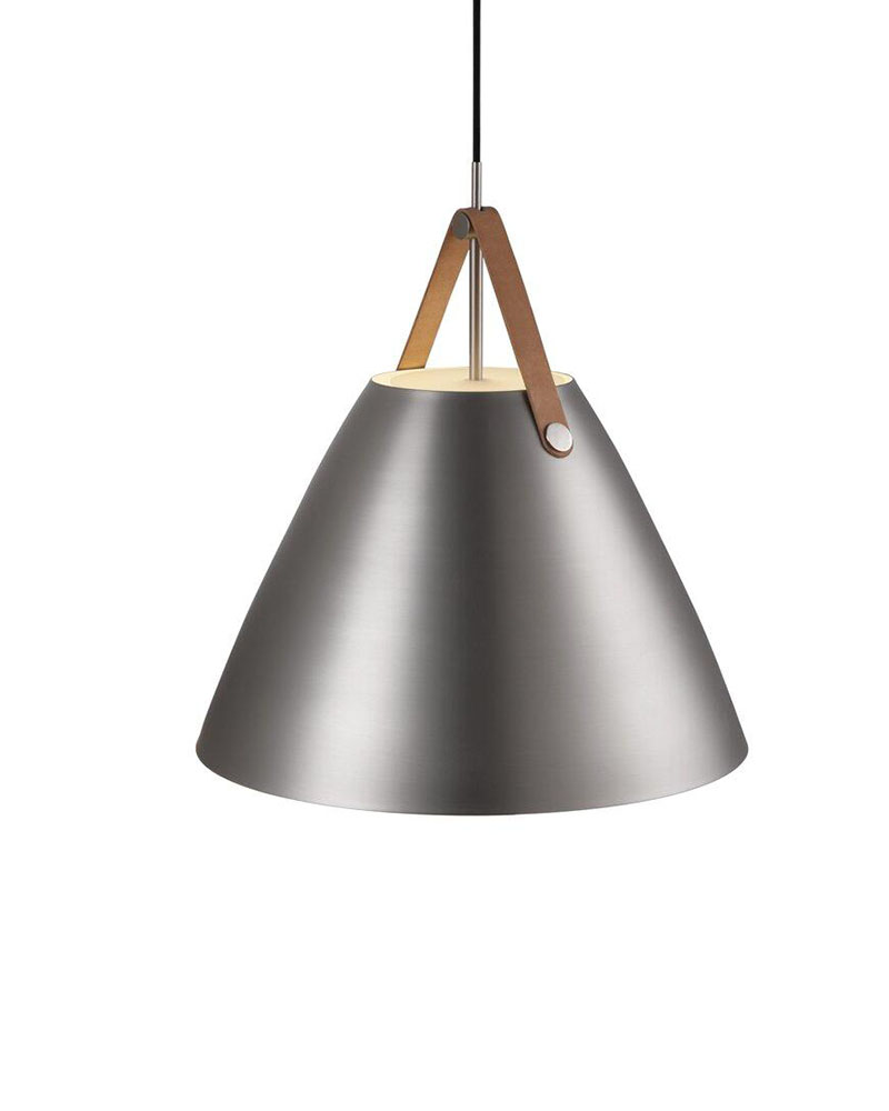 Strap 48 har en diameter på 48 cm. Det er den største pendel i serien, som også byder på en pendel på 16 diameter, en pendel på 27 diameter og en pendel på 36 diameter. Du kan med fordel kombinere flere størrelser og skabe en rød tråd i din boligindretning.