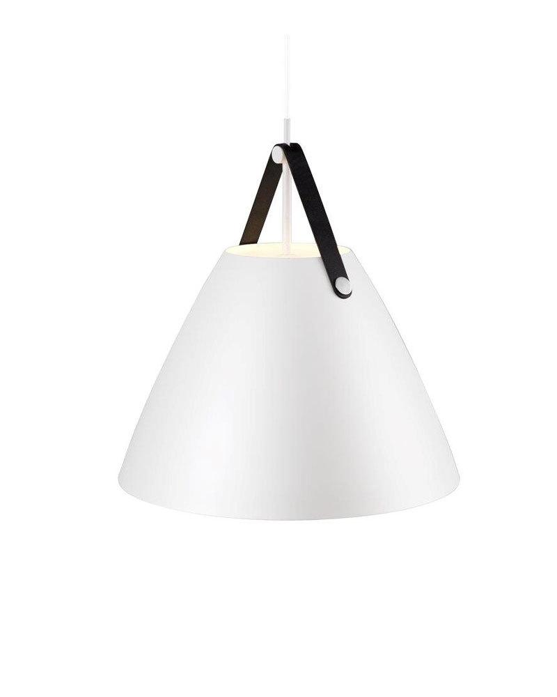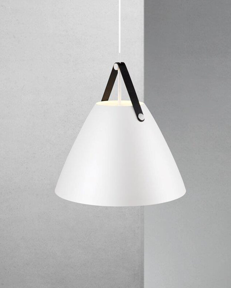 Strap-serien byder på en række lamper i forskellige størrelser og farver. Strap 48 er den største pendel i serien. Du kan også få den imponerende pendel i farverne sort, beige og børstet stål. Der medfølger altid to læderophæng, så du selv kan vælge den læderfarve, du ønsker.