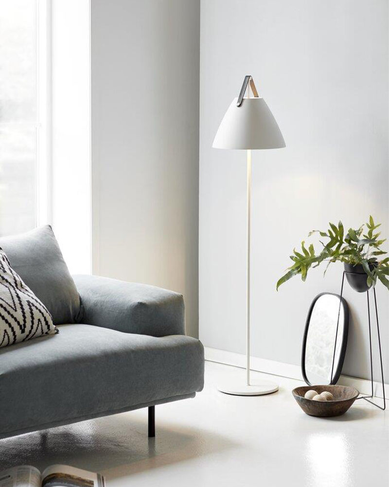 På den måde kan din gulvlampe opfylde forskellige behov i forskellige situationer. F.eks kan din Strap lampe give et dæmpet lys til den hyggelige middag, lidt ekstra lys til læsning af avisen eller et godt kraftigt lys til rengøringen.