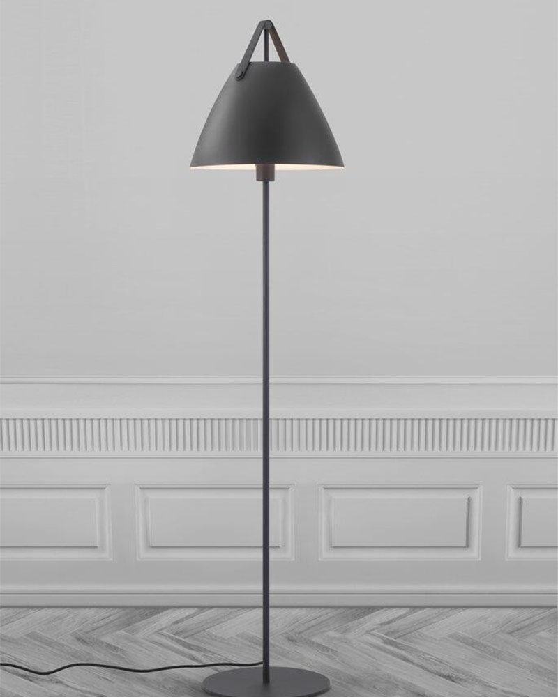 Strap gulvlampe er endnu et eksempel på, hvordan DFTP skaber designs, der holder mange år frem. På grund af den fine læderdetalje i toppen, er det tidløse look på ingen måde uinteressant. Du får her en lampe i god kvalitet og med et smukt design. Lampen giver et behageligt lys og er nem at anvende. Der er en afbryder på fatningen bag skærmen.