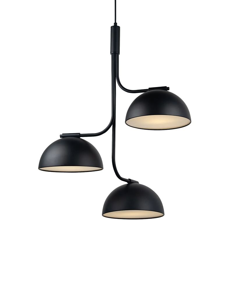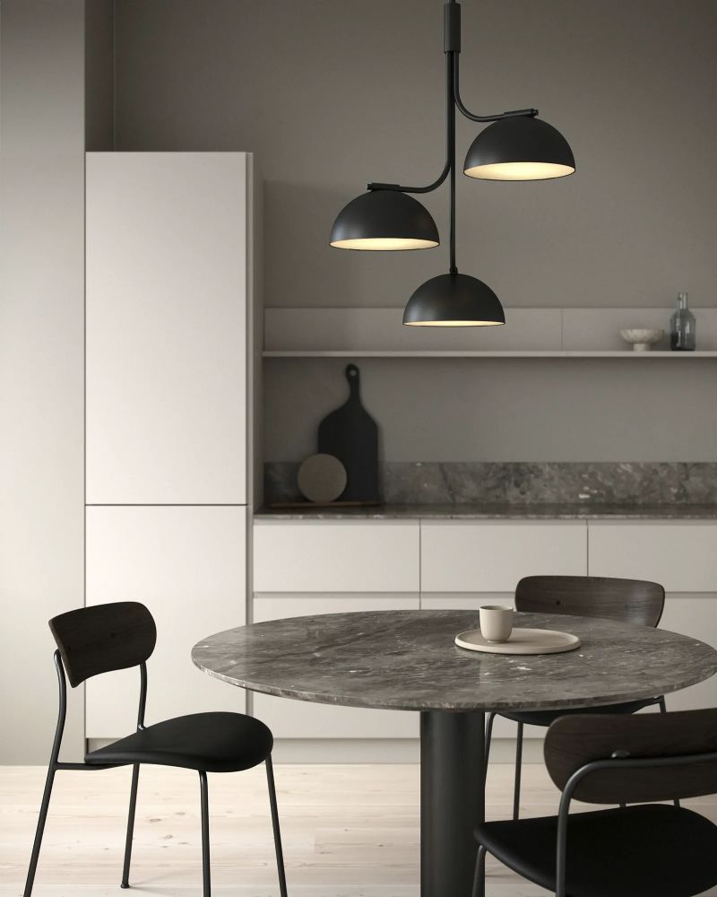 Med sine tre runde skærme skaber Tullio-pendlen en elegant helhed, der fanger opmærksomhed og tilføjer karakter til ethvert rum. Lampeskærmenes diffusorer sikrer et ensartet lysfelt og et behageligt blændfrit lys, så du kan nyde en hyggelig atmosfære i hele rummet.