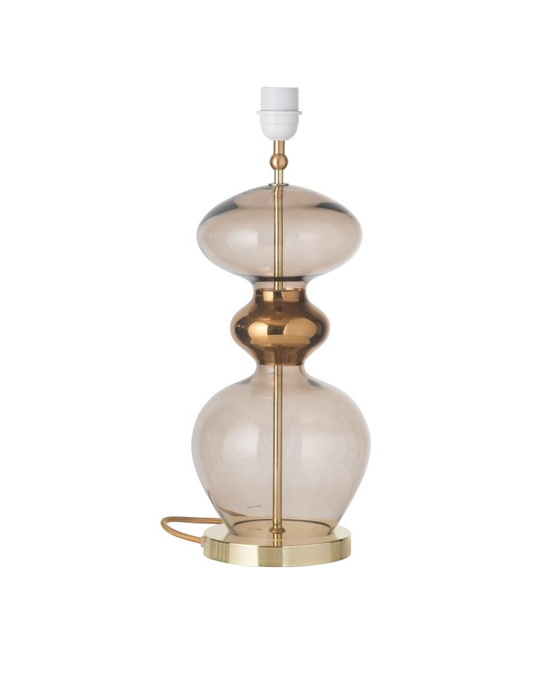 Futura lampefoden består af en smuk mundblæst glasform i farven kastanie. Glasformen er delt i midten af et metallisk bånd, der har samme farve som glasset. Lampefoden hviler på en stilren base af metal.