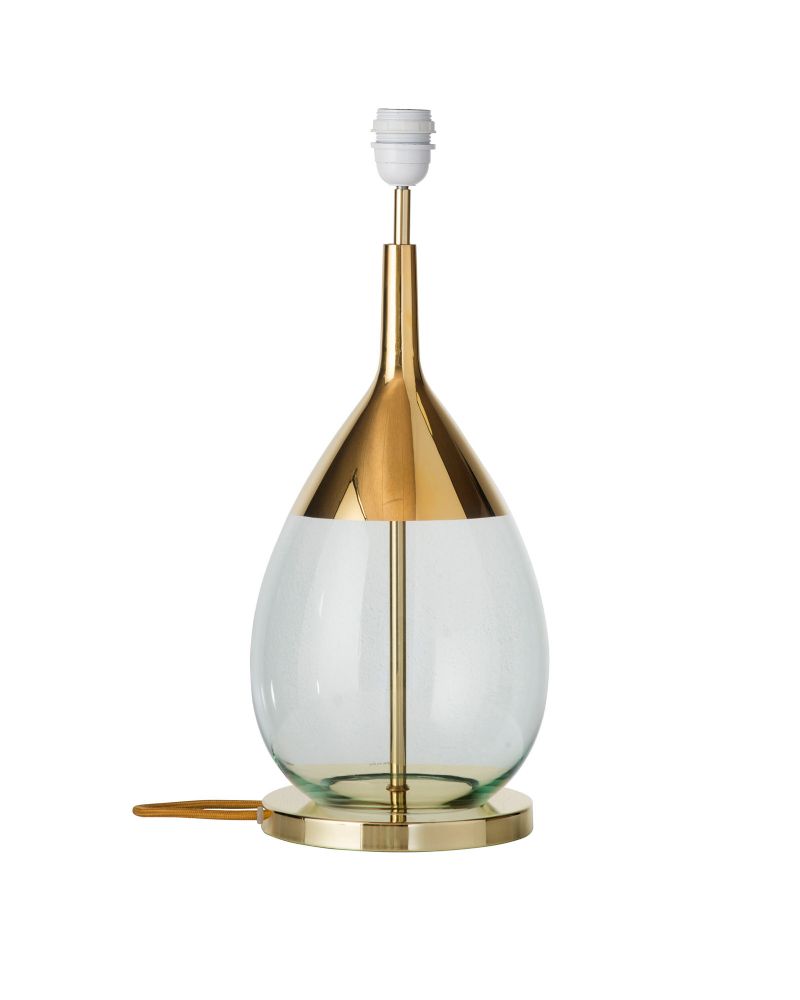 Her får du en mundblæst lampefod i dråbeform med flot grønt glas.