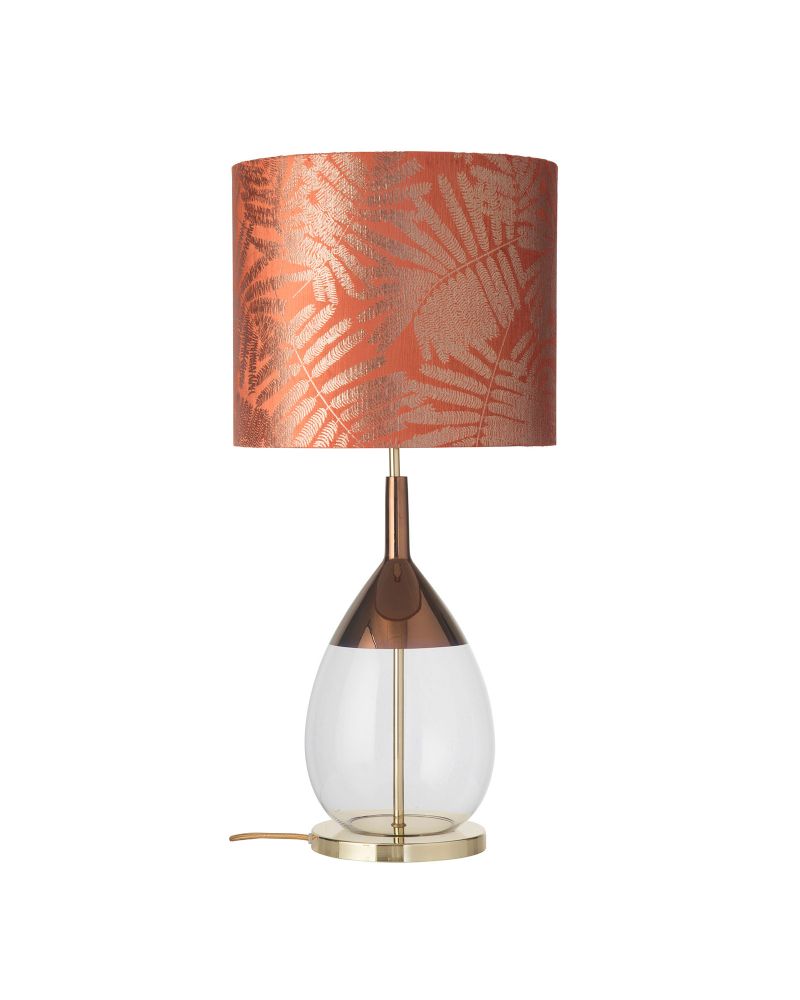 Lampefodens base er guldfarvet metal og toppen kobberfarvet metal.