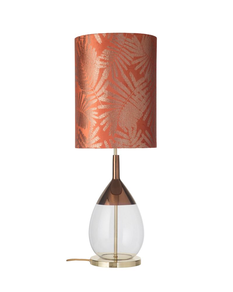 Her får du en mundblæst lampefod i dråbeform med flot klart glas.