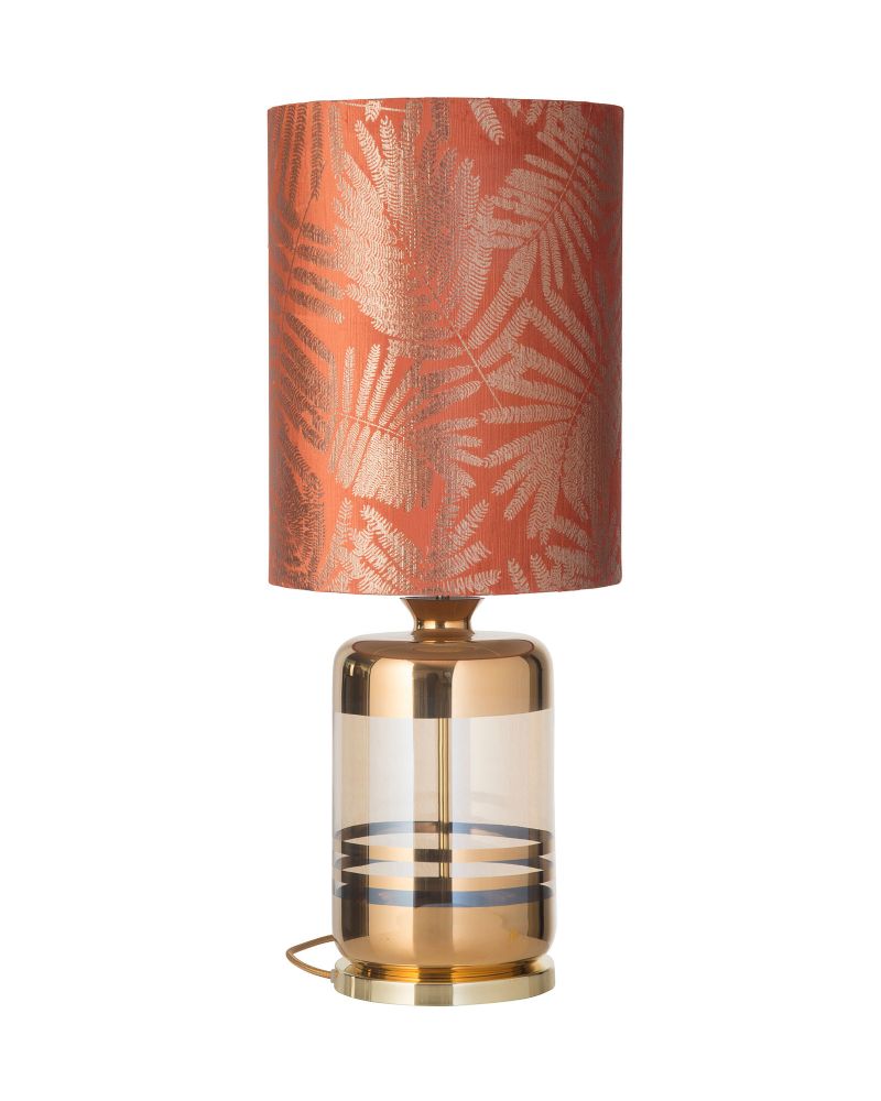 Lampefoden kommer med en stofledning (også i guld), og der er gulvafbryder på ledningen.
