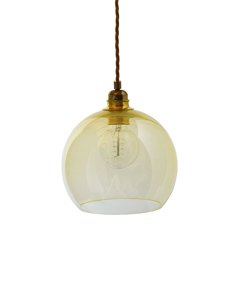 Designer Susanne Nielsen står bag udformningen af den smukke Rowan pendel fra lampeproducenten EBB & Flow. Selvom pendlen fremstår skrøbelig med sin kuppel af glas, er det holdbart materiale i god kvalitet. Denne model af Rowan pendlen har en diameter på 22 cm. Pendlen findes både i mindre og større format. Du kan også vælge en model med et smalt bælte om kuplen. Se alle versionerne af vores Rowan pendler nedenfor.