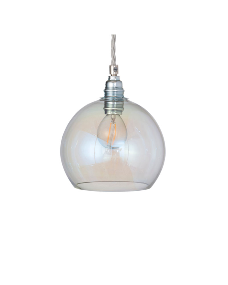 Du kan enten placere glaspendlen for sig selv eller samle flere Rowan pendler i en klynge og få et smukt resultat. EBB & Flow står bag lanceringen af den populære Rowan glaspendel, der er udtænkt af designer Susanne Nielsen. Du kan vælge mellem denne model samt en model med et dekorativt bånd omkring glaskuplen. Rowan pendlen findes i flere størrelser. Denne model har en diameter på 28 cm.