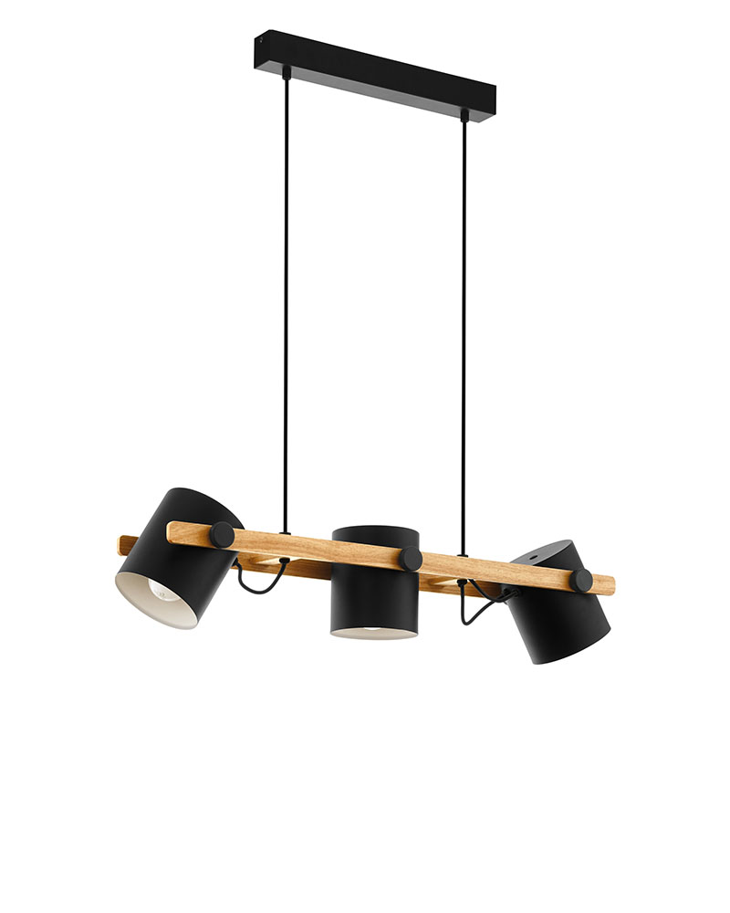 Hornwood Bordlampe er en skøn bordlampe i moderne skandinavisk design - fremstillet i træ og metal. Et lækkert look der på fornem vis kombinerer de tre elegante sorte stål lampeskærme med det bløde og naturlige træ. Hornwood langbordspendel er et godt bud på en flot lampe til spisebordet. De tre lampeskærme kan justeres så du kan fordele lyset jævnt over hele spisebordet.
