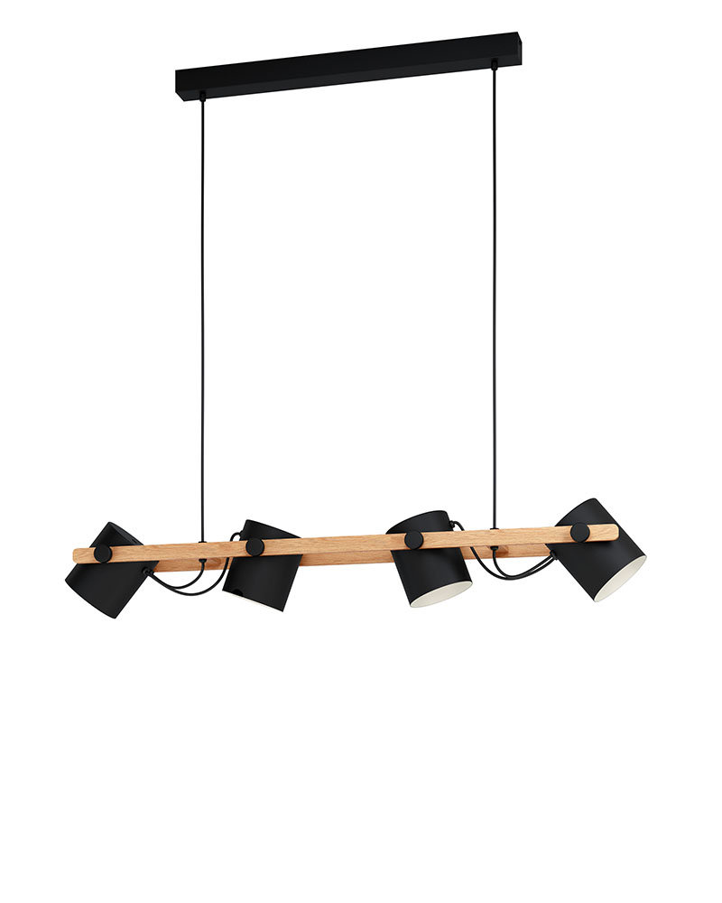 Hornwood Bordlampe er en skøn bordlampe i moderne skandinavisk design - fremstillet i træ og metal. Et lækkert look der på fornem vis kombinerer de fire elegante sorte stål lampeskærme med det bløde og naturlige træ. Hornwood langbordspendel er et godt bud på en flot lampe til spisebordet. De fire lampeskærme kan justeres så du kan fordele lyset jævnt over hele spisebordet.