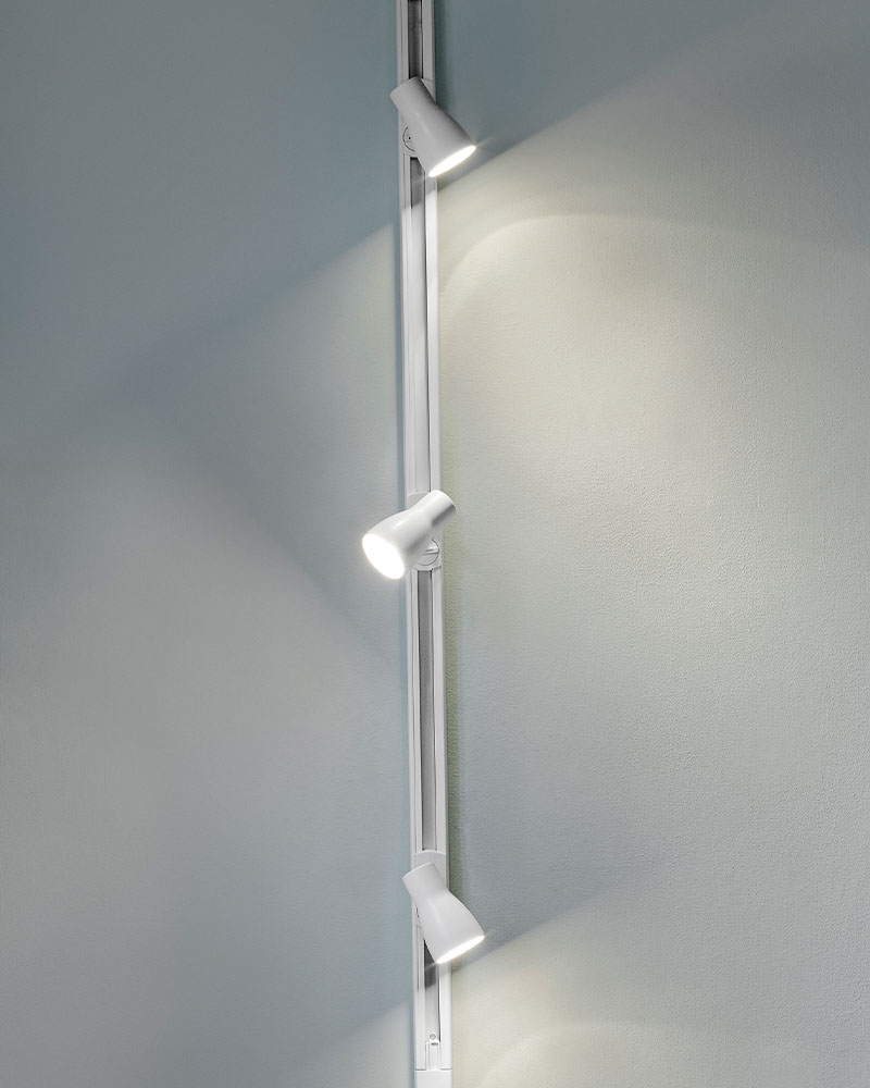 Halo Track Aero spotten benytter GU10 pærer (op til 5W) og kommer med en 5W LED pære. Halo Track systemet fra Halo Design er til dig, der gerne vil designe dit eget skinnesystem og din egen lyssætning. Halo Track systemet fås i både hvid og sort, og kan udbygges nærmest i det uendelige. Systemet består af skinner i flere længder, fire forskellige samlestykker og mange spots samt pendeladaptere, så du nemt kan tilslutte enhver pendel (op til 4 kg).