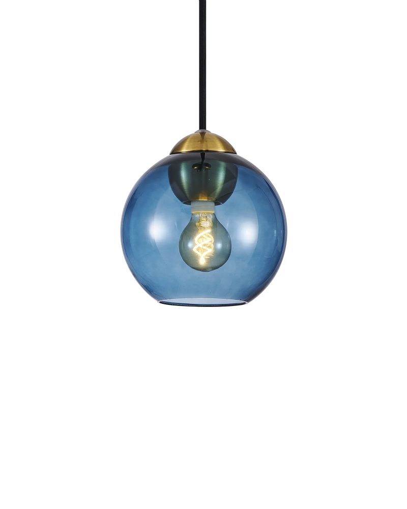 glasfarver. Fatningen er enten i messing, krom eller sort – alt efter hvilken glasfarve du vælger. Bubbles Mini Pendel Ø14 Blå tager sig flot ud både alene og i serier af flere. Lampen er velegnet f.eks. i par over køkkenbordet, eller i en klynge i hjørnet af soveværelset eller stuen.