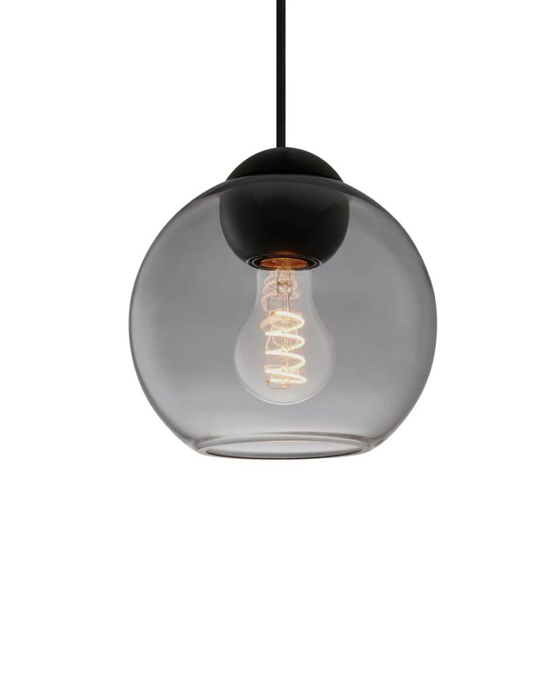 glasfarver. Fatningen er enten i messing, krom eller sort – alt efter hvilken glasfarve du vælger. Bubbles Pendel Ø18 Smoke tager sig flot ud både alene og i serier af flere. Lampen er velegnet f.eks. i serier over køkkenbordet, og alene eller i par over spisebordet.