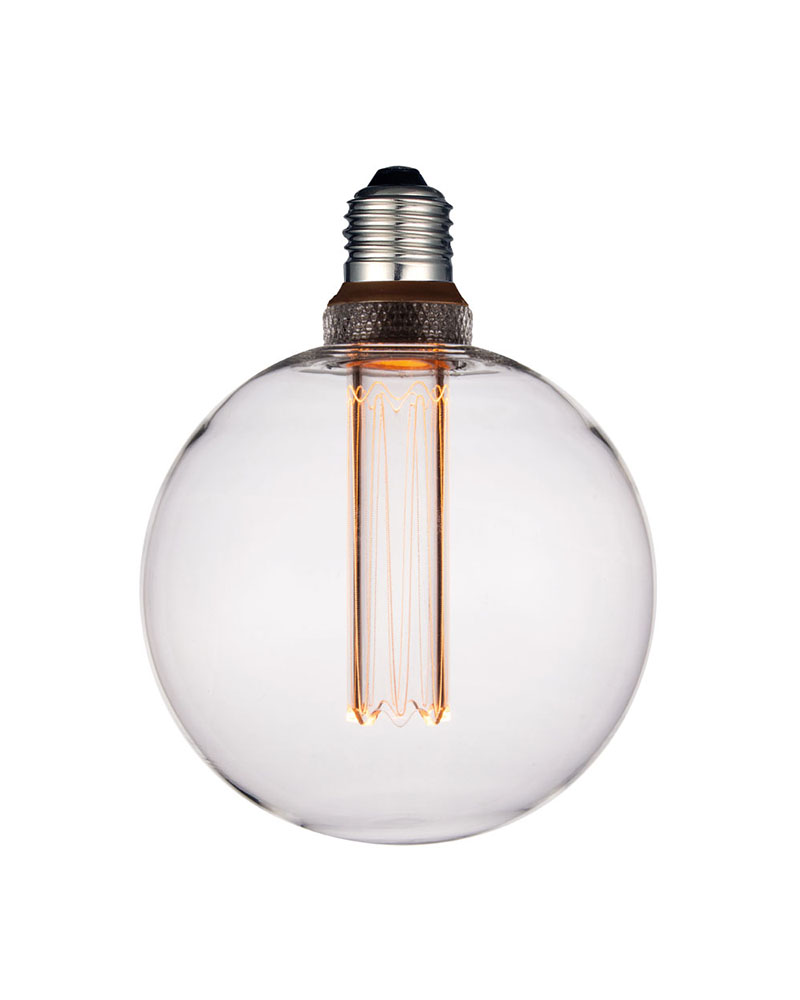 Halo Designs populære Colors Dim Globe dekorationspære er en LED-lyskilde. Det betyder, at den har et super lavt energiforbrug (5 watt) og forventes at kunne lyse i 30.000 timer! Pæren har tretrinsdæmper - du kan således indstille lysstyrken til at være ca. 100 %, 50 % eller 25 %. Den smukke pære fås i tre varianter: den blide amber, den industrielle smoke og så den stilfulde blitz, som du har valgt her.