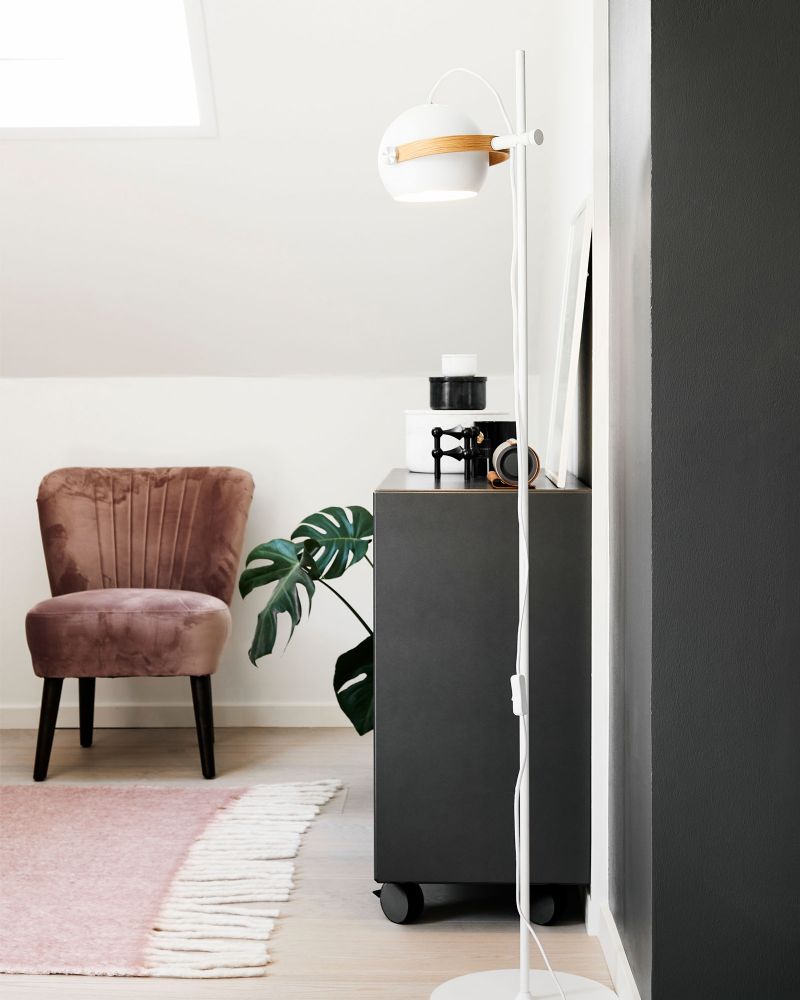 Hvid gulvlampe i trendy dansk design