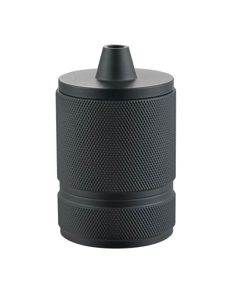 Denne spændende E27 fatning er designet af Michael Waltersdorff for det innovative og anerkendte lampefirma Halo Design. Fatningen er laserskåret og produceret i metal. Modellen her er i farven sortlakeret metal. Du kan også få den innovative fatning i farverne antik messing og sølv.