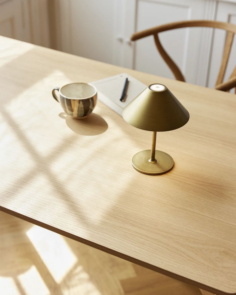 Med Hygge Bordlampe får du en lampe der fungerer helt uden brug af ledning. Den kommer nemlig med et indbygget batteri, så du nemt kan tage lampen med dig, når du får behov for lys et andet sted.