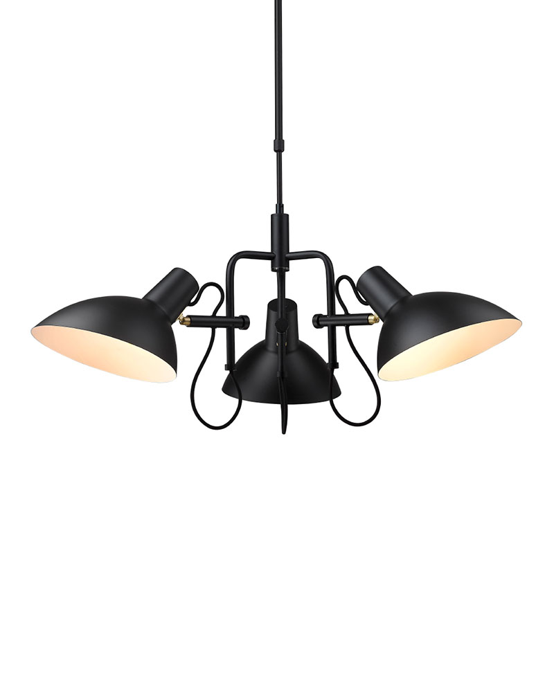 Fælles for alle lamperne er den genkendelige og særegne lampeskærm der giver lamperne et industrielt retro look. De 3 lampeskærme på Metropole Lysekrone kan justeres individuelt i den retning du