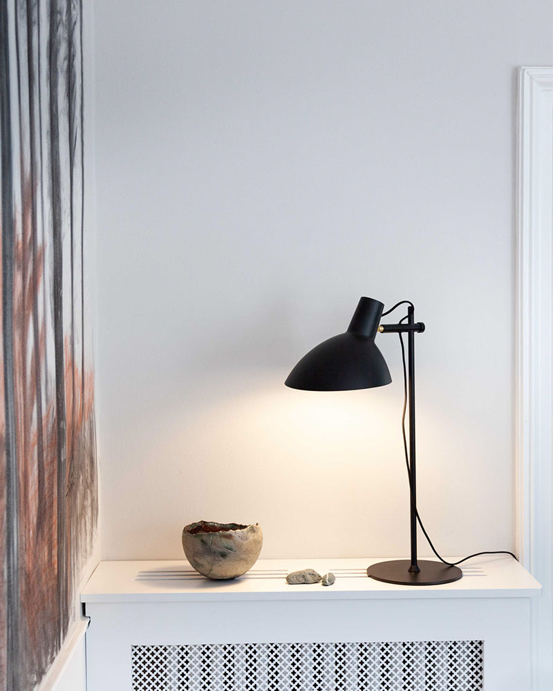 for pengene. Det synes vi egentlig han er sluppet ret godt fra da han designede Metropole Bordlampe Sort.