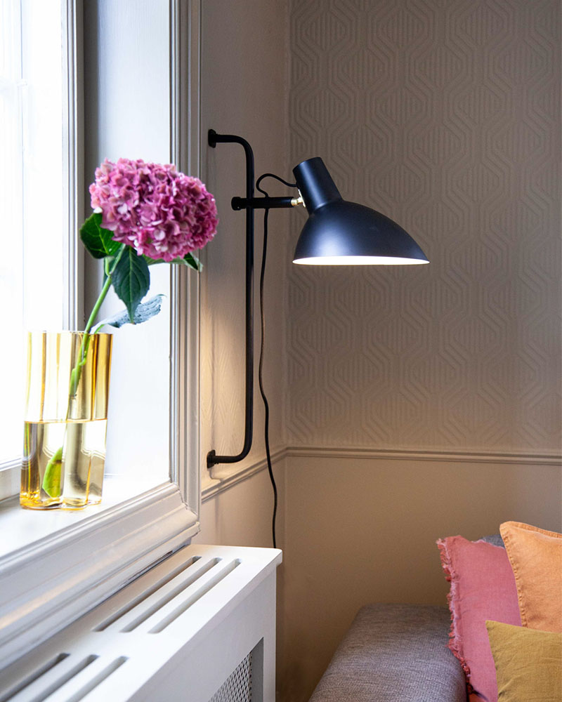 Udover den her viste version i mat sort, fås Metropole Grande Væglampe også i farven Antik Messing. Metropole Grande Væglampe er en del af en større serie, der også består af bordlamper, gulvlamper og pendler der gør det muligt for dig at skabe en gennemgående stil