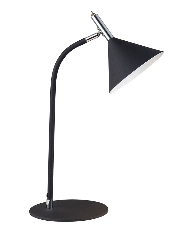 Den valgte model er produceret i metal og leveres i farven sort/krom. Der findes en identisk model i hvid, som du naturligvis også kan få på luxer.dk. Der følger en to meter lang plastikledning med stik med i pakken, når du modtager din nye bordlampe.