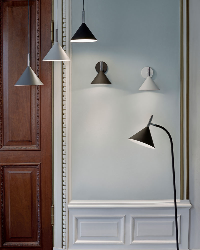 I Nysø serien findes der også både bord-, gulv-, væg- og pendellamper, og de er produceret i både denne mat hvide og i sort.