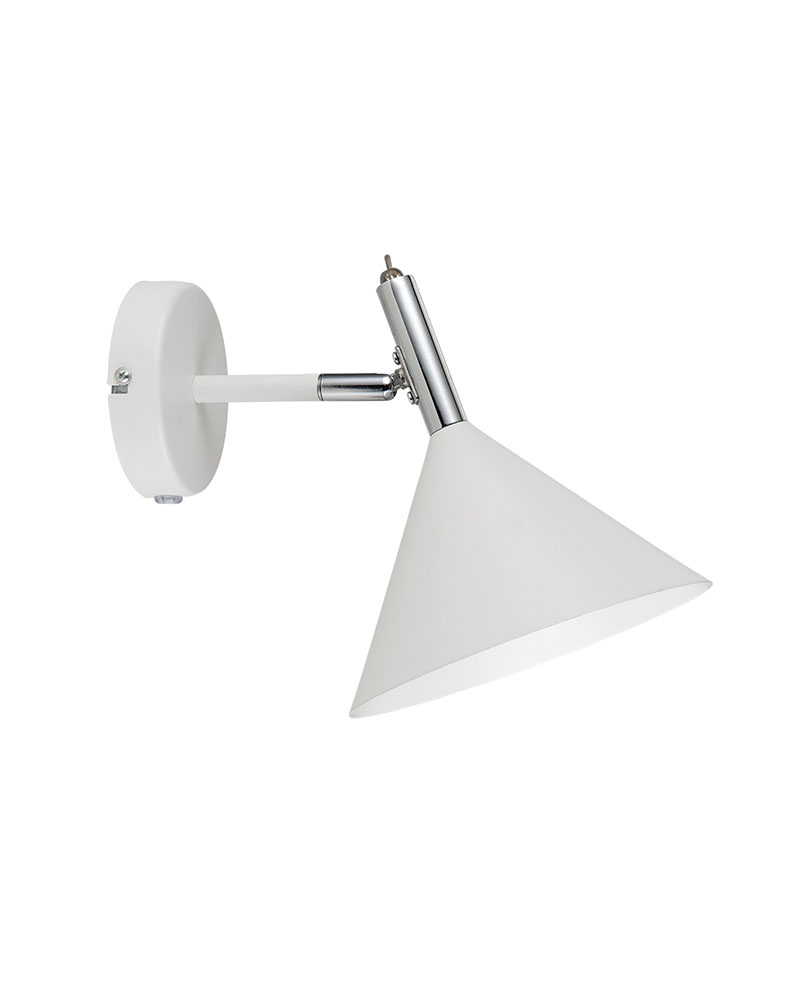Med denne væglampe fra Halo Designs Nysø serie, får du en stilren lampe, som stadig holder den dag i dag. Lampeskærmens diameter måler 17 cm, så den er på ingen måder dominerende i indretningen.