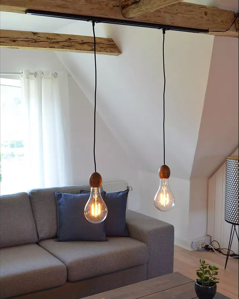 Halo Track skinnen kommer med indbygget strømtilslutning til almindelig ledning uden jord, så du behøver ikke andet end en ledning samt naturligvis skinnespots og/eller pendeladaptere. Skinnen er på 120 cm, men fås også i en længere udgave på 200 cm.