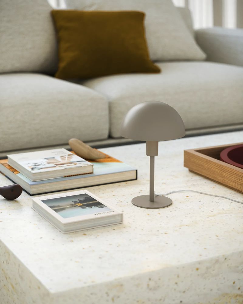Med sine enkle og tidløse detaljer er Ellen Mini bordlampen den perfekte lampe til børneværelset, vindueskarmen, hylden eller andre steder, hvor du ønsker at skabe et behageligt og blødt lys. Lampen er lavet i lakeret metal og fås - ud over denne lyse brune - i flere farver, så du kan vælge den farve, der passer bedst til dit hjem og din stil.