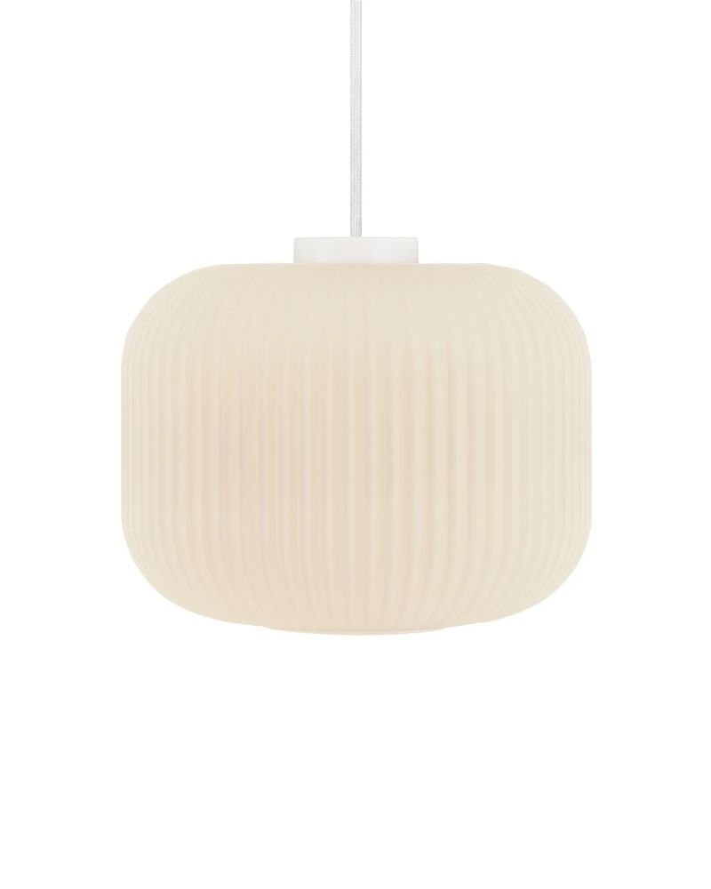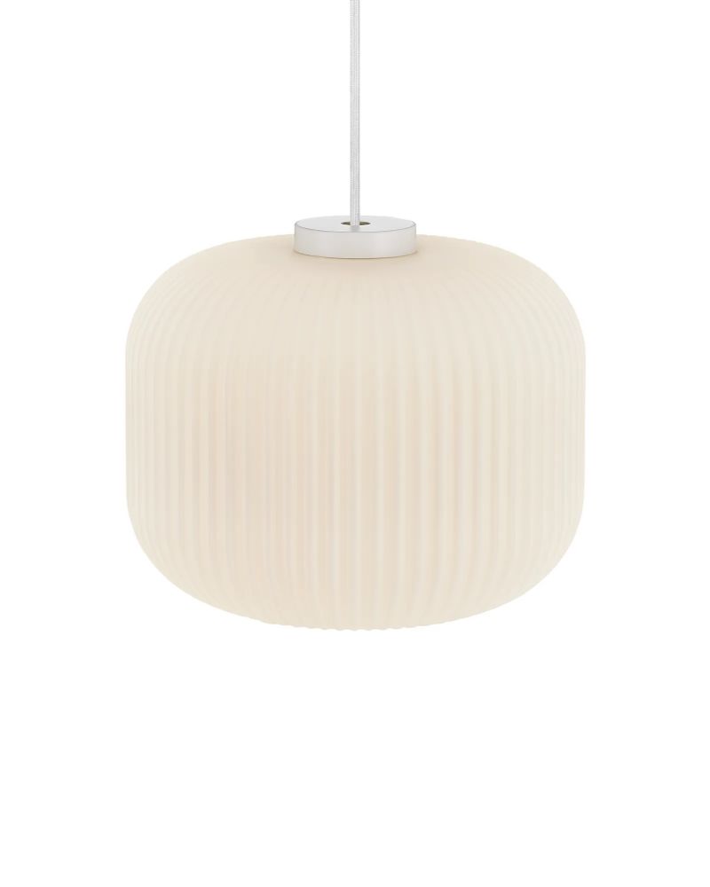 Milford 30 pendel er en smuk og unik lampe, designet af Nordlux. Den har en diameter på 30 cm og en højde på 23,5 cm, og er lavet i opal hvidt glas. Dette glas giver dig en perfekt spredning af lyset, så du får et blødt og behageligt lys i rummet.