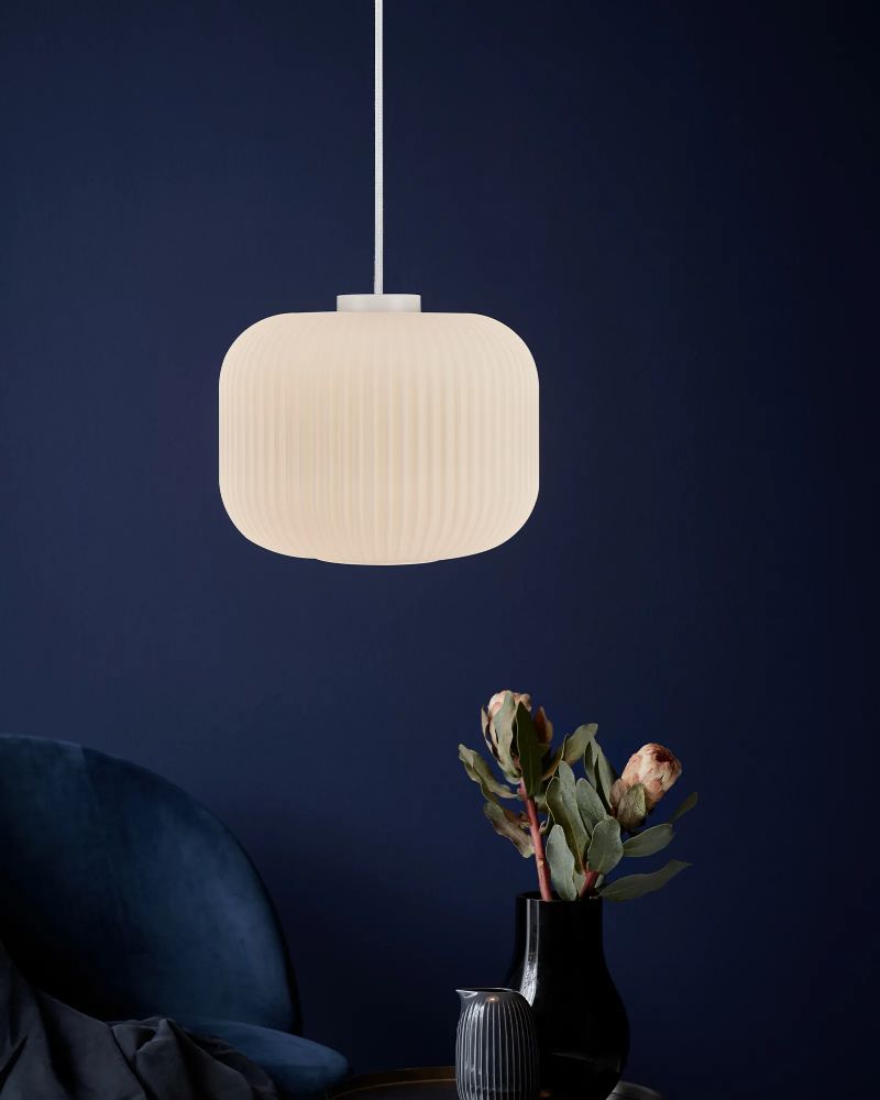 Designet er en kombination af organiske former og en rillet overflade, som giver pendlen sin helt egen, særlige udstråling. En opal glaslampe har den store fordel, at den spreder lys flot ud i hele rummet. Derfor er glaslamper som denne ideel over spisebordet. Med Milford 30 pendel fra Nordlux, kan du skabe en elegant og sofistikeret atmosfære i dit hjem, samtidig med at du får god belysning i rummet.