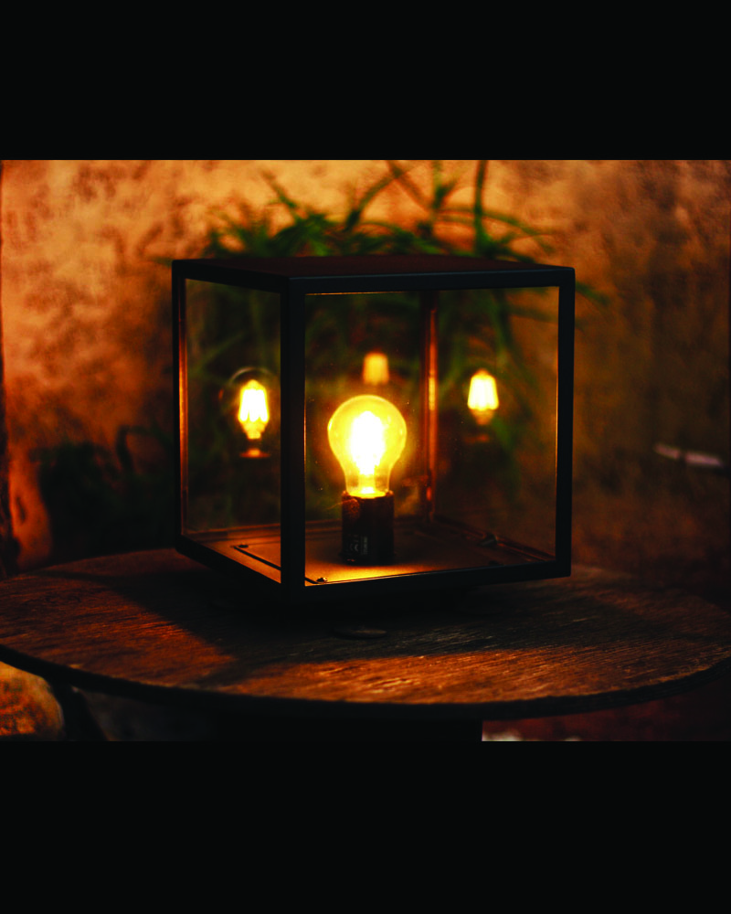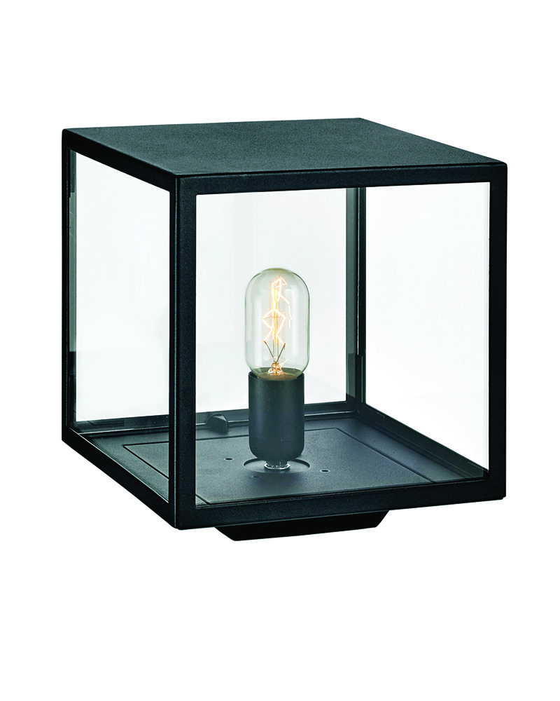 Lampen er produceret i sort pulverlakeret metal med klart glas.