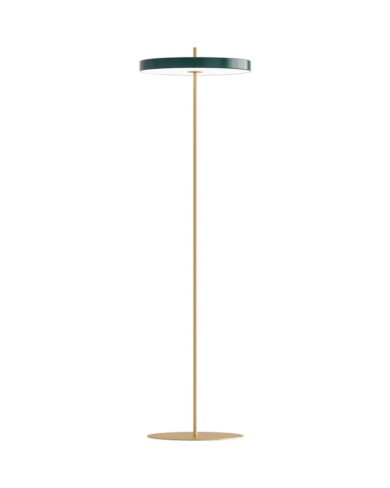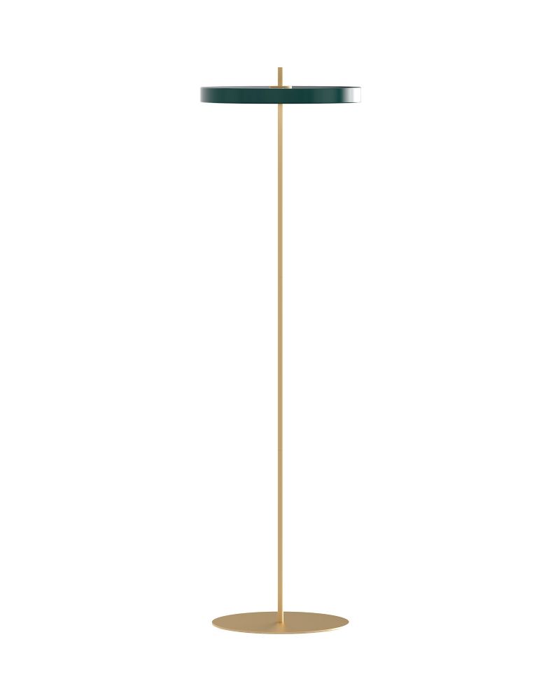 En helt igennem fantastisk LED gulvlampe i et moderne dansk design - og så med et lækkert og behageligt lys. Asteria Gulvlampe fra danske Umage, er en slank og minimalistisk lampe med et slankt stel i messing, indrammet af en stabil fod - ligeledes i messing - og den 43 centimeter store grønne lampeskærm. På toppen kan du på den lille messingtop justere lysstyrken via den indbyggede dæmper.