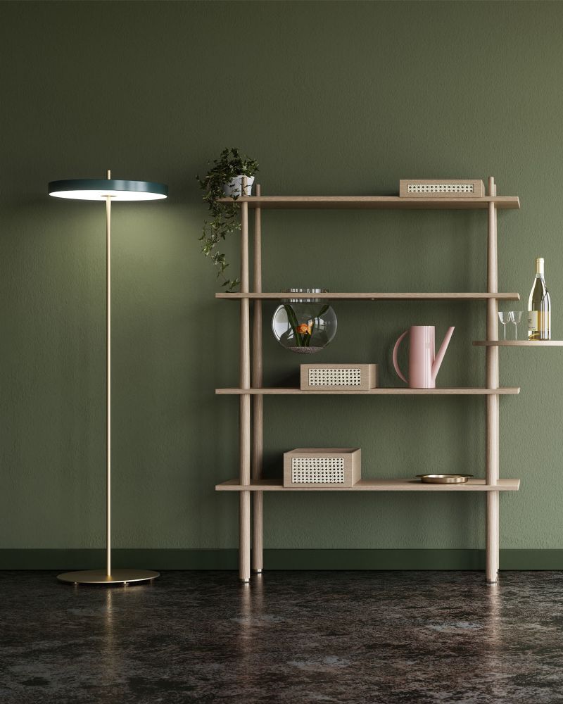Det er danske Umage der har lavet den fantastiske Asteria serie - og det er de sluppet godt fra, hvis du spørger os. Gulvlampen har - lige som de andre lamper i Asteria serien - en lækker grøn LED skærm med en hvid diffusor der giver et lækkert og ensartet