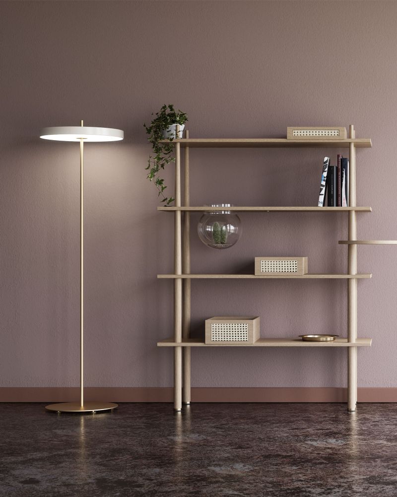 Det er danske Umage der har lavet den fantastiske Asteria serie - og det er de sluppet godt fra, hvis du spørger os. Gulvlampen har - lige som de andre lamper i Asteria serien - en lækker perlehvid LED skærm med en hvid diffusor der giver et lækkert og ensartet