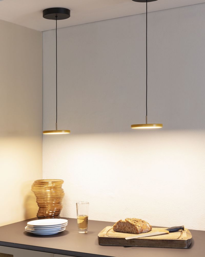 LED pendellampen Asteria Micro Saffron Yellow er skøn blanding af design, teknologi og funktionalitet - bygget i høj kvalitet og kombineret med moderne LED teknologi i en smuk gul skærm. Lampen fra det danske firma Umage, er designet med et slankt, elegant og minimalistisk design som passer til ethvert moderne hjem. Lyset kan efter behov dæmpes og skærmens hvide diffusor sikrer en stemningsfuld belysning og en behagelig atmosfære.