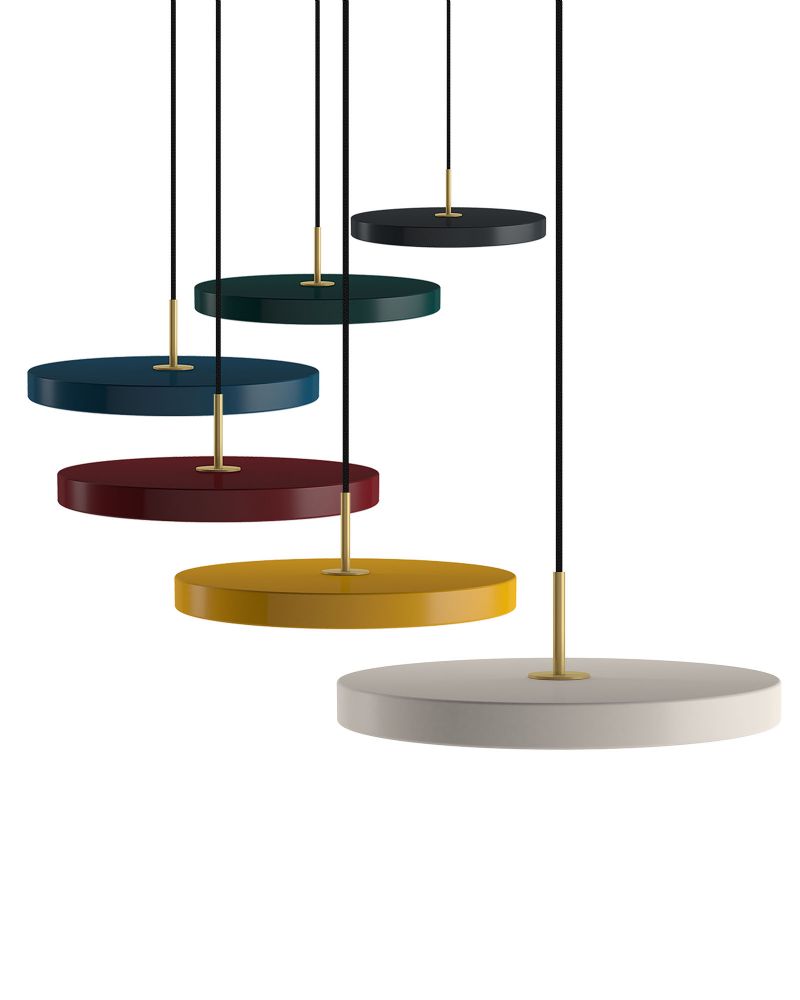 Den smukke Asteria lampe fås i 11 forskellige moderne farver, så uanset din personlige smag - og den indretning i hjemmet som lampen skal matche - kan du finde din favorit i det store udvalg. (Se hele Asteria serien her) Lampen kommer med en skøn messingdetalje
