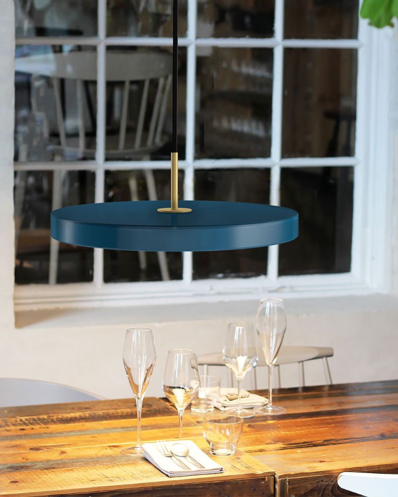 LED pendellampen Asteria Mini Petrol Blue er en succesfuld kombination af teknologi, design og funktionalitet, bygget i kvalitetsmaterialer og kombineret med moderne LED teknologi i en smuk blå skærm. Lampen fra det danske firma Umage, er designet med et slankt, elegant og minimalistisk design som passer til ethvert moderne hjem. Lyset kan efter behov dæmpes og dermed sikre en behagelig atmosfære og en stemningsfuld belysning.