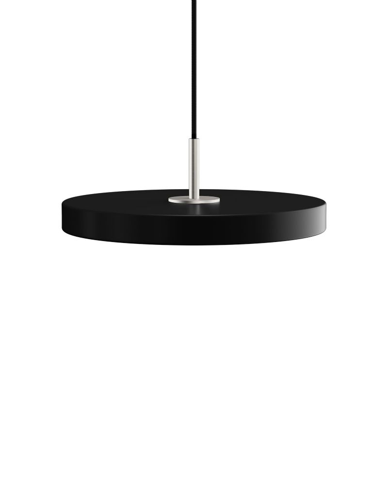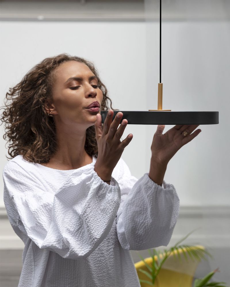 LED pendellampen Asteria Mini Black er en succesfuld kombination af teknologi, design og funktionalitet, bygget i kvalitetsmaterialer og kombineret med moderne LED teknologi i en smuk sort skærm. Lampen fra det danske firma Umage, er designet med et slankt, elegant og minimalistisk design som passer til ethvert moderne hjem. Lyset kan efter behov dæmpes og dermed sikre en behagelig atmosfære og en stemningsfuld belysning.