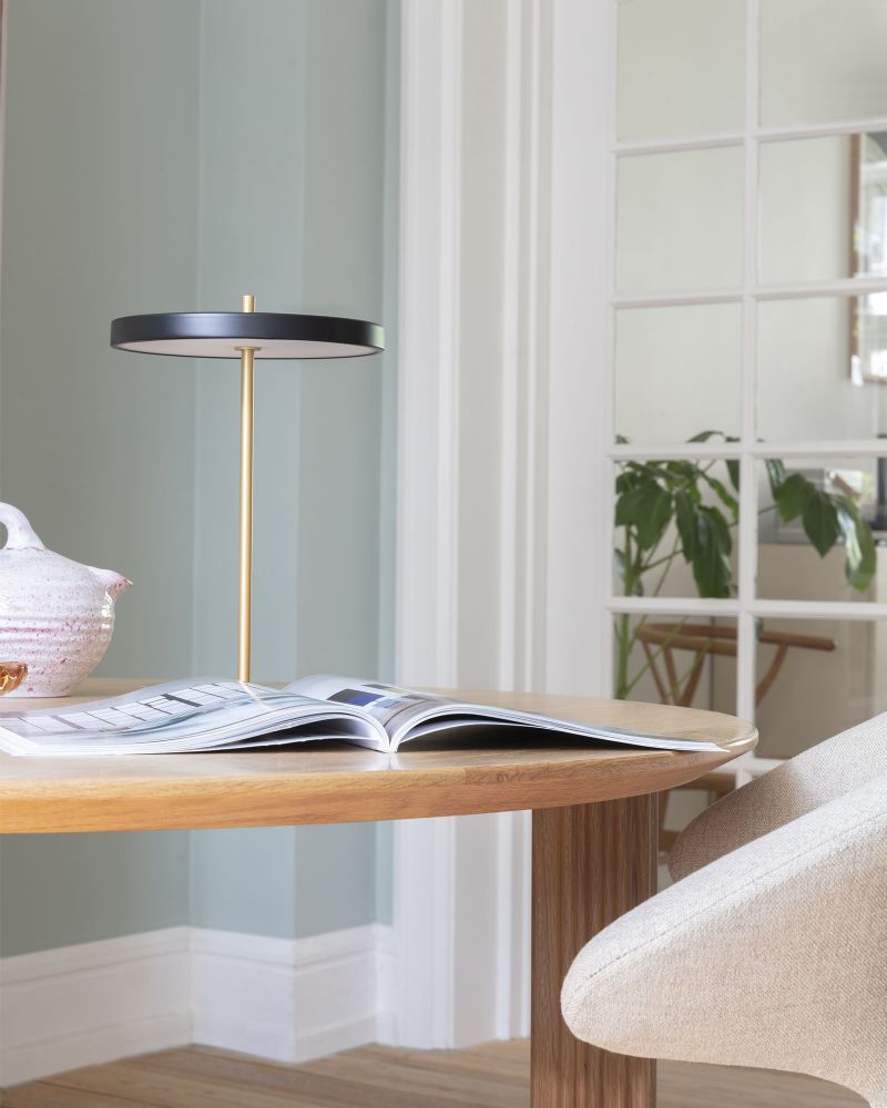 Bordlampen er helt fri for ledninger, da den fungerer via et genopladeligt batteri.