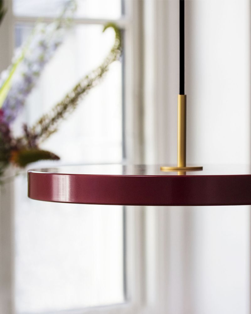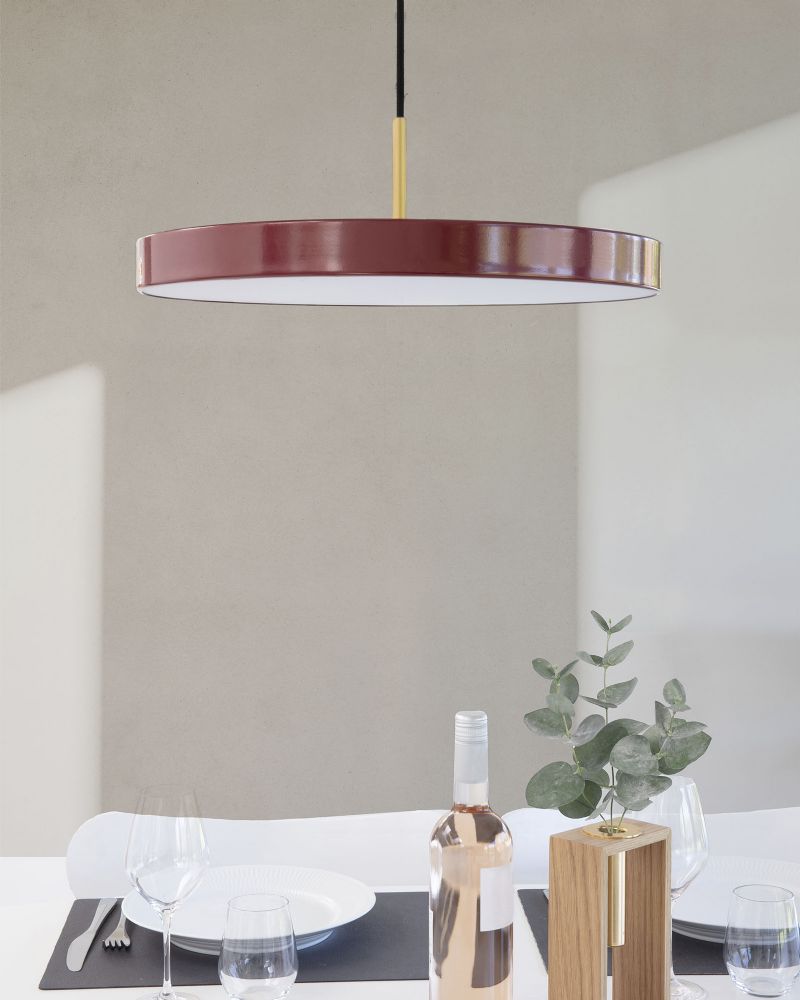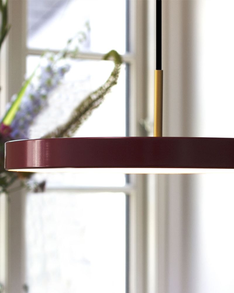 LED pendellampen Asteria Ruby Red er en succesfuld kombination af teknologi, design og funktionalitet, bygget i kvalitetsmaterialer og kombineret med moderne LED teknologi i en smuk rød skærm. Lampen fra det danske firma Umage, er designet med et slankt, elegant og minimalistisk design som passer til ethvert moderne hjem. Lyset kan efter behov dæmpes og dermed sikre en behagelig atmosfære og en stemningsfuld belysning.