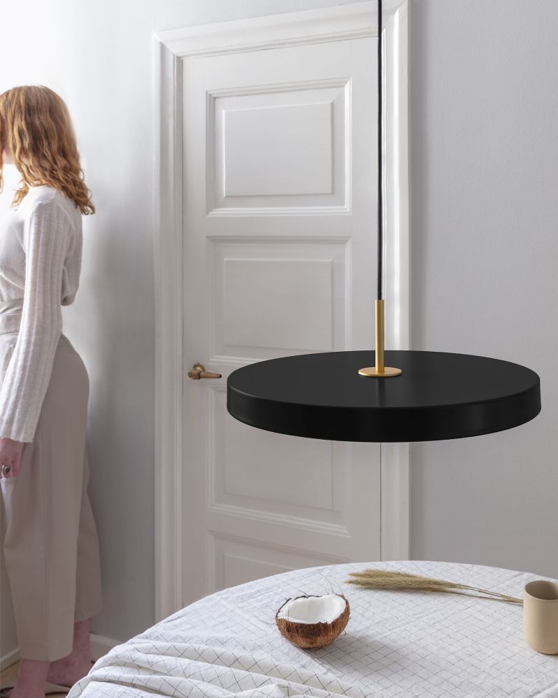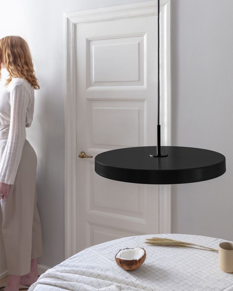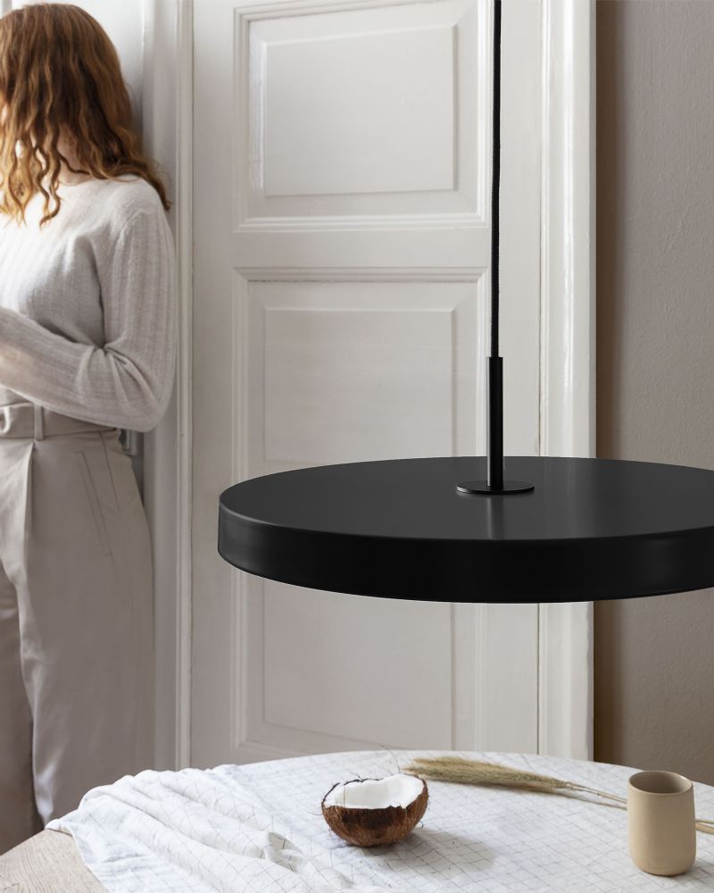 LED pendellampen Asteria Black er en succesfuld kombination af teknologi, design og funktionalitet, bygget i kvalitetsmaterialer og kombineret med moderne LED teknologi i en smuk sort skærm. Lampen fra det danske firma Umage, er designet med et slankt, elegant og minimalistisk design som passer til ethvert moderne hjem. Lyset kan efter behov dæmpes og dermed sikre en behagelig atmosfære og en stemningsfuld belysning.