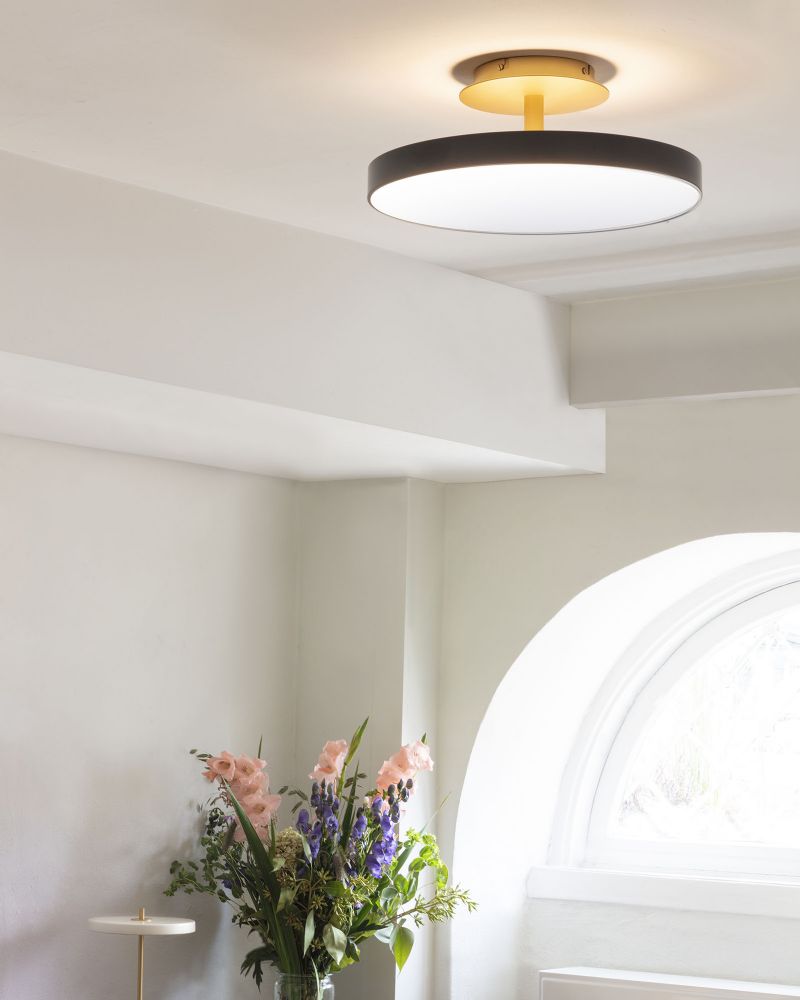 Asteria Up loftlampen laves i 2 størrelser; Medium versionen der er vist her, er en skøn loftlampe med en diameter på 43 centimeter. Ønsker du en større lampe, så tag et kig på Asteria Large, der har en diameter på hele 60 centimeter. Uanset hvilken størrelse du vælger, kan du udover denne version i antracit grå også få loftlampen i sort eller perlehvid.