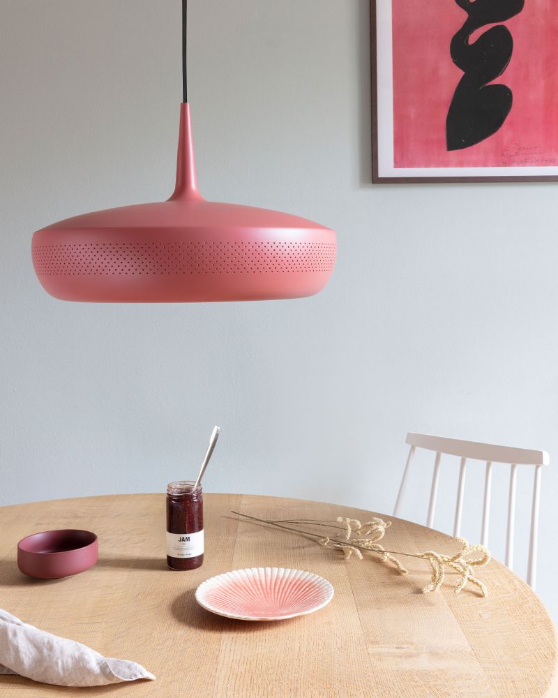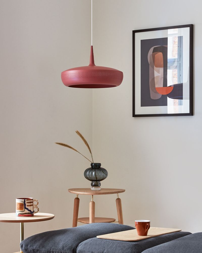 Clava Dine pendellampen kan også fås i farverne hvid, okker, blå, brun, kobber, stål og messing og kan dermed nemt fås i en version der passer til ethvert hjem og enhver stil.