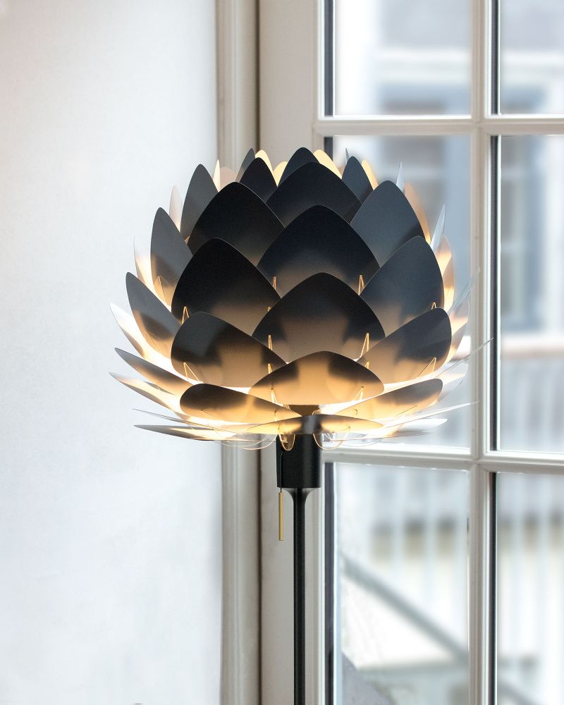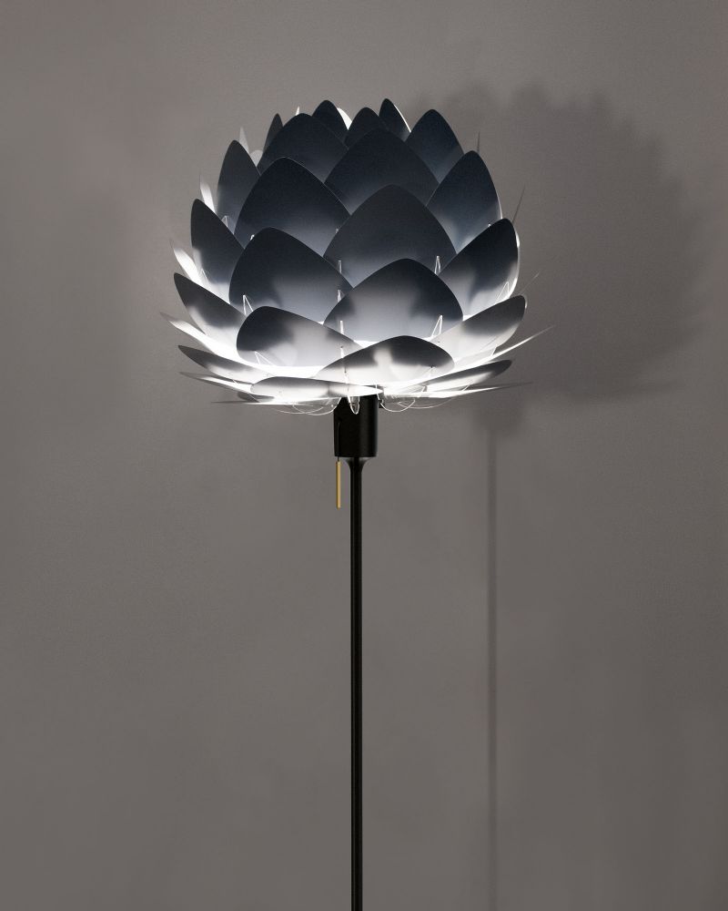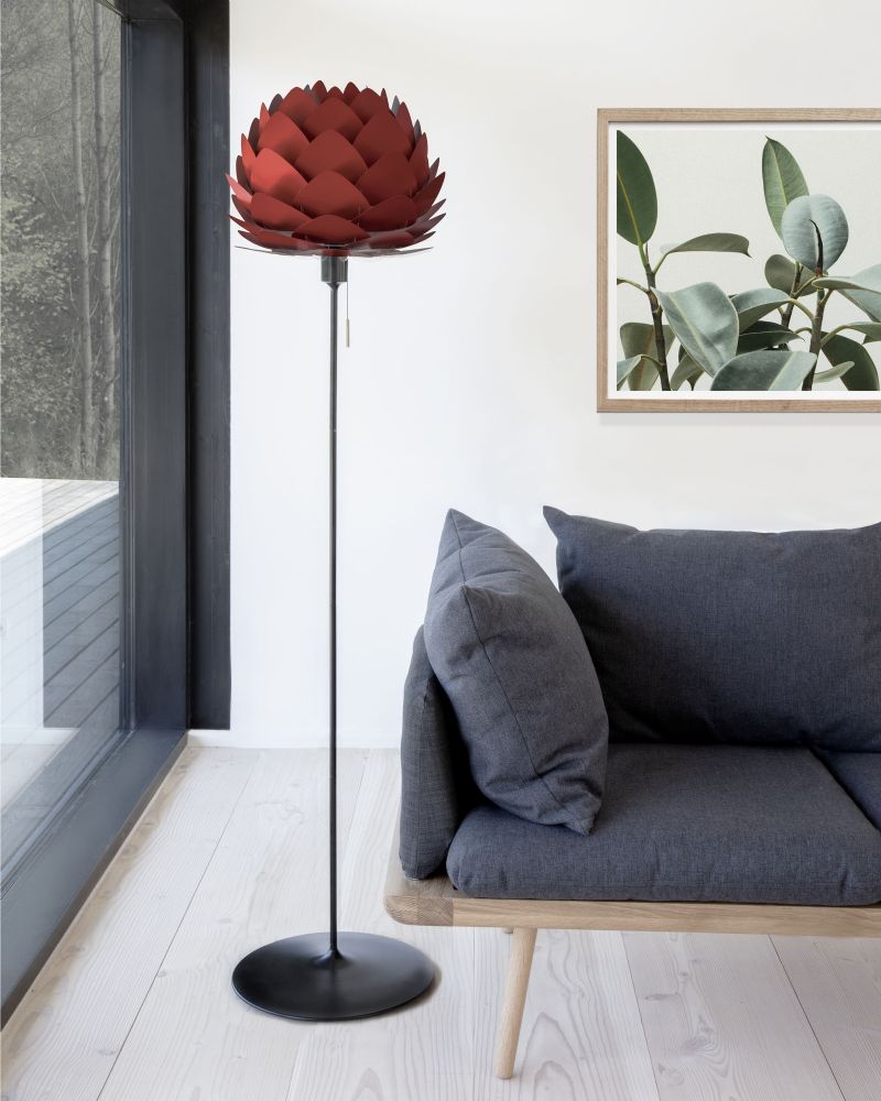 Gulvstanderen kommer uden lapeskærm, og kan tilpasses alle Umages mange lampeskærme. (Samt mange andre skærme, da der benyttes standard montering) Du kan dermed skabe nøjagtig det look og den stemning som du er på jagt efter.