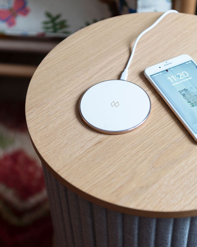 Unifier fra den danske virksomhed Umage, er en lækker, elegant og praktisk oplader. Har du først prøvet den, vil du slet ikke kunne undvære den! Sæt din trådløse lampe eller læg din mobiltelefon på opladeren og opladningen begynder straks. Den hvide Unifier har en smuk rosa guldkant der giver et diskret og eksklusivt look.